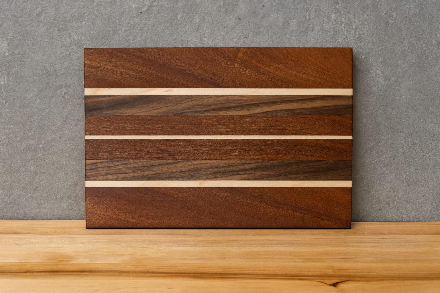 Hardwood cutting board made with Maple, Walnut, and African Sapele.